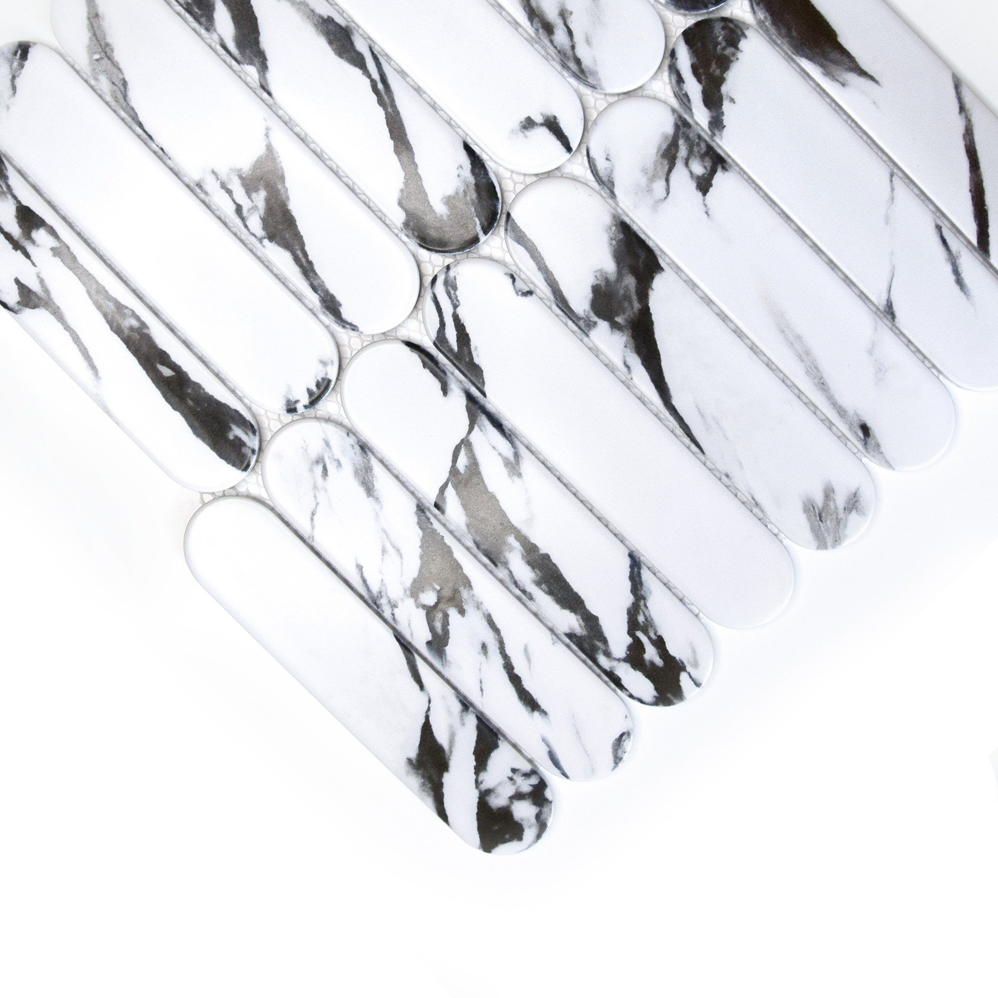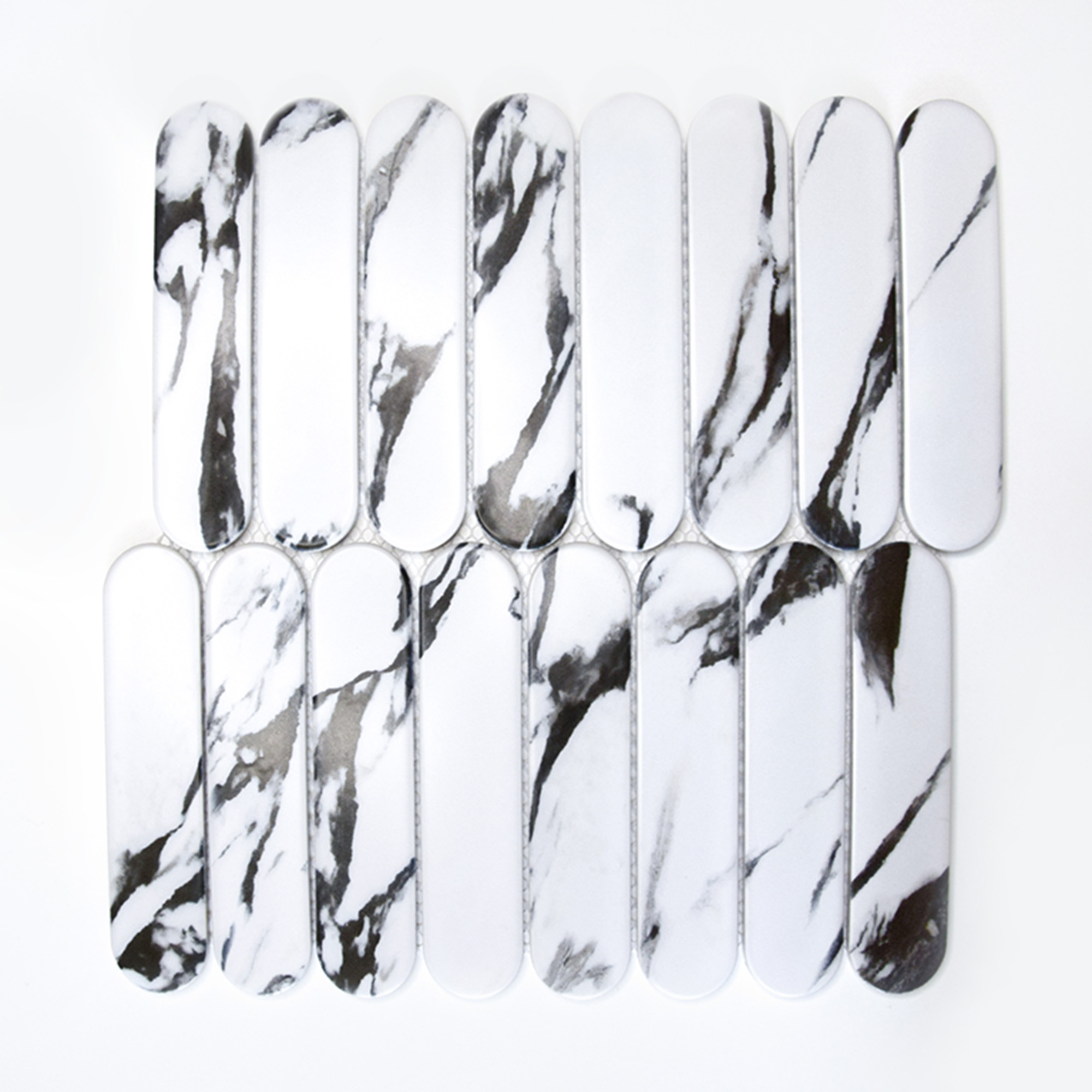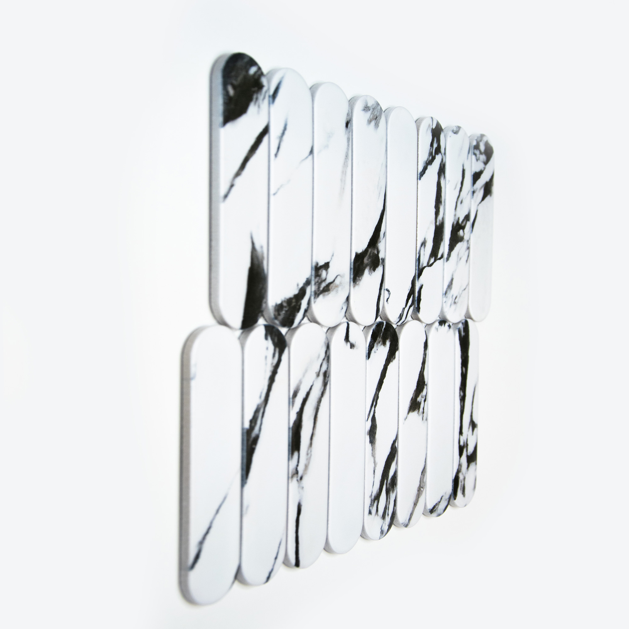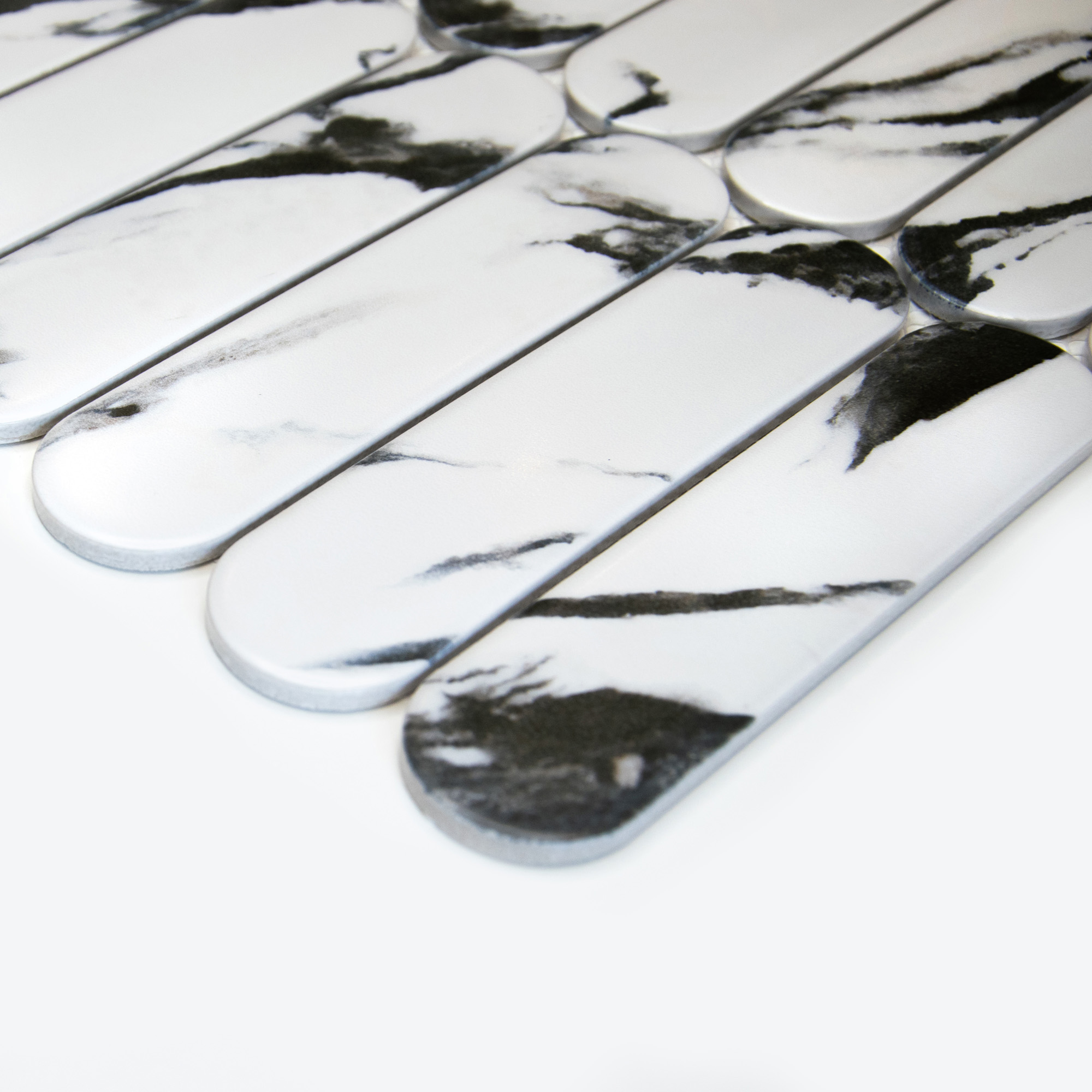 Pills Arabescato matt to wybór dla osób, które chcą nadać wnętrzu wyrazisty, designerski charakter. Inspirowane marmurem Arabescato płytki łączą kontrastowe, czarno-szare żyłkowanie z modnym kształtem wydłużonych biszkoptów, tworząc powierzchnię o wyjątkowej głębi i luksusowym wyglądzie. Matowe wykończenie podkreśla elegancję wzoru, jednocześnie łagodząc mocne kontrasty.